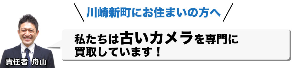 JR南武線の川崎新町駅周辺にお住まいで「古いカメラ・フィルムカメラ」のご売却をお考えなら「川崎で一番高く買取できるカメラ買取市場」までご相談ください。