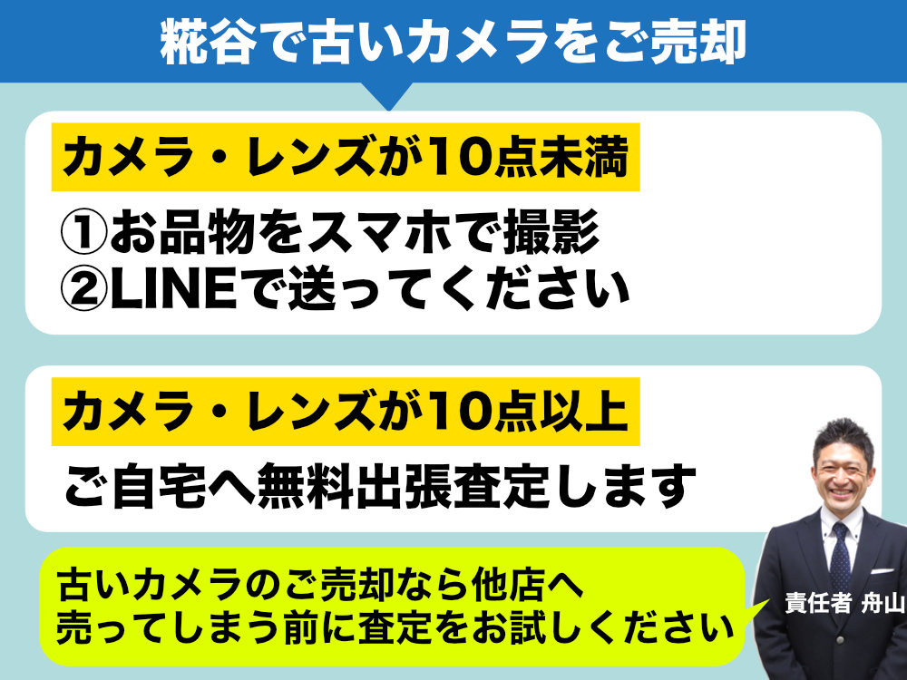 糀谷にお住まいの方でフィルムカメラなどを売却されるなら、画像を送るだけで査定できる「LINE査定」を活用ください。